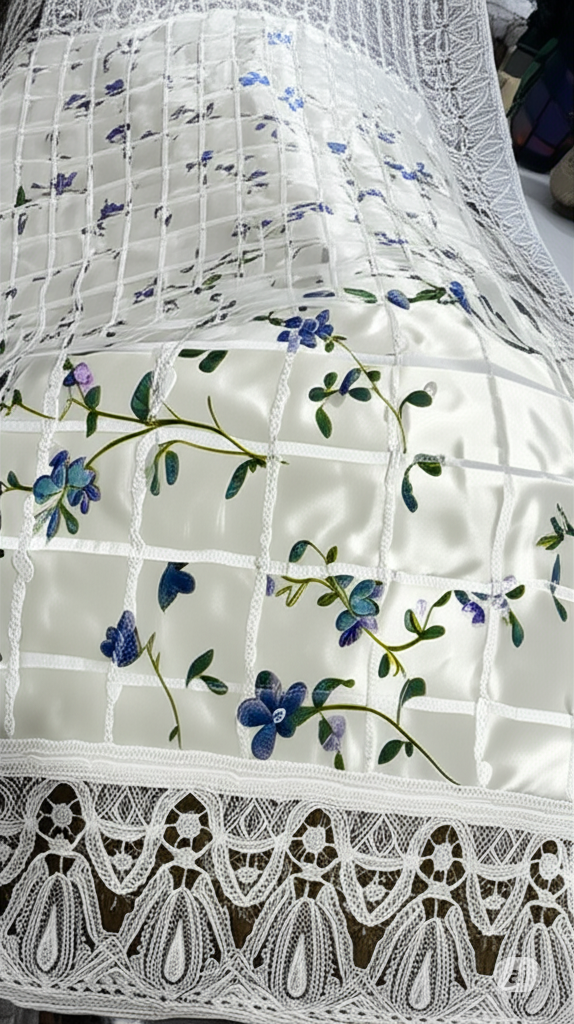 - Border: Ornate and delicate white lace trim for a refined finish.